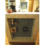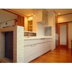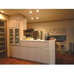 食洗機付きの最新のキッチンは、パナソニックのリビングステーションです。キッチン扉はベージュのやさしい色合いを選び、明るくスッキリとした印象になりました。キッチン横には飾棚を造作しました。2種類のモザイクタイルを使い、こだわりと遊び心の感じられる素敵な棚に仕上がりました。 またダイニングとの間仕切り壁を取り払ってレイアウトを変更し、明るく開放的なキッチンスペースになりました。キッチン背面部を収納にしたほか、食器棚なども造作して収納力をアップしたので、キッチンが物で溢れる心配もありません。