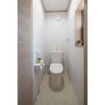 1階のトイレにはタンクレストイレのTOTO、ネオレストを採用しました。廊下の奥行きの狭さを考えて、トイレドアは内開きから折戸に変更しました。 夜中、1階のトイレへ行くのが危ないと感じられていただめ、2階にトイレを増設しました。各部屋のスペースなどを考慮し、増築をしてトイレを設置しました。