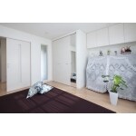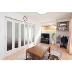 リビングを少しでも広くするため、出窓部分を増築してリビングに取り込みました。隣の洋室との間仕切りはあえて撤去せず3枚引戸を取り付けることで、TPOに合わせて使用できるようにしました。 リビング横の和室は、洋室へと改装。収納スペースもしっかりと確保したこの部屋は、居間はリビングの延長として、将来的にはご夫婦の寝室として使えるようにプランニングしました。洋室には明かりとりのためにFIX窓を施工しました。このガラスには奥様こだわりのエッチングを施しています。