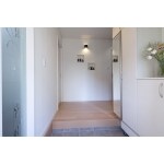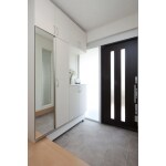 玄関ドアは開閉のしやすい引戸を採用しました。玄関にたくさんの光を取り込みたいとのことでしたので、袖部分が採光できるタイプの商品をご提案しました。 袖部分からもそとの光を取り込み、明るくなった玄関ホール。玄関収納はサイズアップし、溢れていた小物も収納できるようになってスッキリとしました。玄関ドアを開けた正面にはニッチ、横には隣の洋室への採光のために取り付けたエッチング入りのガラスが、家に入った瞬間から来客者を楽しませてくれます。