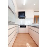吊戸をなくして開放感のあるオープンキッチンにしました。料理をしながらLDKが見渡せるので、いつも家族を感じられます。また、コの字型キッチンを採用し、冷蔵庫もすぐそばに配置したので、料理中の動線がずっと短くなり効率的になりました。