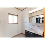 洗面脱衣室も0.75坪から1坪へ拡張しました。明るい色の内装を使用して、広くて明るい洗面脱衣室になりました。もちろん車椅子のまま入れるスペースを確保したので、介助もしやすくなりました。