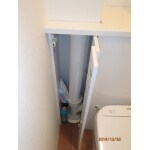 排水立管をキャビネットで隠しトイレ空間をスッキリりお洒落にしました。 設備機器も充実した機能で、節水、節電にもなっています。