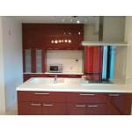 LDKが広くなったので、キッチンも対面キッチンに変更。 カップボードも同色のものを使用ました。 コンロ周りにはキッチンパネルを貼ってお掃除を簡潔に。 いつまでも清潔にきれいに保てます。