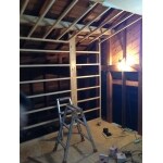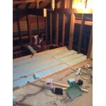 既存の屋根裏スペースを利用して、画像で断熱材の入れてあるスペース約2畳ほどに部屋の拡張をしました。