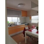 キッチン横にありました勝手口は使わないとのことでしたので、ドアを塞いで土間の部分にフローリングを貼りました。 その分キッチンのスペースを広く取れますので、冷蔵庫もスッキリ納まります。