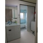 0.75坪ほどしかなかった洗面室ですが、洋室の一部を買い解体し、洗面室にしたことにより、とても広い洗面室になりました。 洗濯機もピッタリ納まり、お客様にも大満足していただけました。