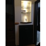 小物を飾る事が上手な奥様には、玄関前の階段下のスペースにニッチを作り、飾り棚へリフォームするご提案をいたしました。