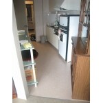 以前は水まわり部分も床がじゅうたんだったので汚れが目立ってしまっていましたが、今回の工事の際にクッションフロアに変えてお手入れが楽になるようにご提案いたしました。 また、キッチンの吊り戸棚を少し低い位置に設置し、使いやすいようにご提案いたしました。