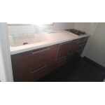 綺麗に使われていますが、施主様の希望により、取替工事となりました。後ろ側の壁に家電収納付収納システムキャビネットの設置を希望されていました。