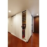 洋室の入り口の場所を変えることで、廊下側に収納を設けました。大容量で課題を実現いたしました。