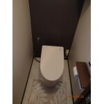 タンクレストイレで見た目がスッキリしました。 背面のブラウンの壁が高級感あるトイレ空間を演出しています。