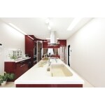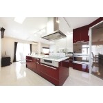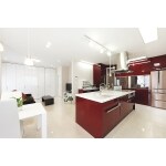 人気のアイランドキッチンで、インパクトのある赤が上品にキッチンを演出してくれます。収納力も抜群。 採光をたくさん取り入れ、とても明るいLDKになりました。