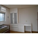 以前は使っていなかった御勝手口に棚をおき、冷蔵庫のおさまりも悪く実際のスペースよりも狭く感じました。対策として御勝手口をふさぎ、ちぐはぐだった収納棚を撤去しました。スペースが広がり、新しくした収納棚と冷蔵庫を綺麗に納めることに成功しました。