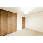 出入口の扉とクローゼット扉を入替えました。木目調の扉にすることでお部屋にあたたかみが増したかと思います。 クローゼットの内部は枕棚とハンガーパイプも取付け、収納しやすくなりました。 照明とカーテンレールは既存の物を再利用しました。