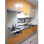 奥様の身長に合わせてワークトップを80cmに。元気が出るビタミンカラーのキッチンに。