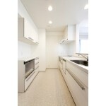 システムキッチンに合わせてカップボード兼家電収納も設置しました。扉材が揃ってとてもスッキリとまとまって見えます。シンプルで清潔感のあるキッチンになりました。 狭かったカウンターの開口を大きくして吊戸棚を付けないことで、開放感のあるキッチンへと変わりました。