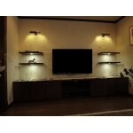壁一面にエコカラットを施工しました。 飾り棚のダウンライトとピクチャーライトが綺麗に反射しています。