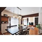 和室との間仕切りを撤去し、広々とした子世帯のLDKを新設しました。 梁の色を変えることで、素敵なアクセントになっています。