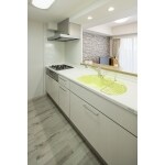 トクラスと弊社で作った、トクラスBbの弊社オリジナルプランのキッチン。アクセントの黄色のシンクがナチュラルな空間を彩る。 吊戸棚をなくしてカウンターの開口を大きくすることで開放的なキッチンになりました。