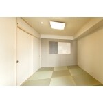 縁なし半畳を新調、アクセントクロスにエコカラットをデザイン貼りし、和モダンテイストを取り入れました。