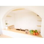 (旧株式会社ハウスドゥでの事例です。)隣家とのプライバシーが気になり、なかなか窓が開けることができなかったお部屋には高窓を取り付けることをご提案。 吹き抜けにはロフトも造作。空間も広げつつ、大収納も確保しました。 いろいろな写真をご参考に見て頂いたところ、プロヴァンス風の写真をとても気に入られ、対面キッチンにはアーチ状の垂壁、壁には珪藻土を。冬の寒さをやわらげるため、床は無垢材のパインフローリングを、各所お悩みに対し工夫を施しご提案しました。