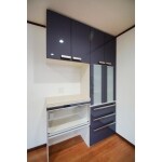 LDK全体のプランを作成しました。お子様が小さいので対面式の、吊戸棚なしのタイプをご提案しました。キッチンに立っていても視界が広がり、お子様の様子を確認できます。シンクの奥に、調味料など背の低い物を入れられる手元収納付きのタイプをお勧めしました。光沢のある扉と、セラミック製のカウンターで、とても高級感のあるキッチンになりました。