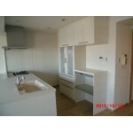 取れる壁と吊戸棚を無くし、開放的なキッチンに仕上げました。
