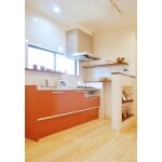 (旧株式会社ハウスドゥでの事例です。)収納場所が少ないとお困りでしたので、「階段下の冷蔵庫兼パントリー」「家電収納棚造作」「ワンちゃんグッズの収納スペース」等、適材適所に収納をご提案。 キッチンに家電収納カウンターを造作し、限られたスペースでも効率よくお料理が出来る空間に。キッチンのオレンジ色で、お部屋全体のイメージも明るくなりました。