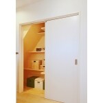 (旧株式会社ハウスドゥでの事例です。)収納場所が少ないとお困りでしたので、「階段下の冷蔵庫兼パントリー」「家電収納棚造作」「ワンちゃんグッズの収納スペース」等、適材適所に収納をご提案。