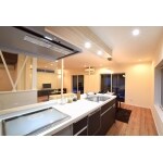 システムキッチン、カップボード設置。内装床壁天井交換。 壁付けだったキッチンをオープンキッチンに改装し、開放的な空間に。