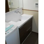 収納充実の洗面室へ。 魔法びん電気即湯器ですぐにお湯が出るから お湯を使うときも無駄な捨て水がありません!