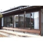 木製のガラス戸からサッシに取り替え、合わせて縁框に化粧板を張り塗装、犬走りもコンクリ打ち直しの補修を行いました。