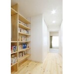 本棚(造作)のある廊下(無垢材使用)