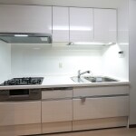 (旧株式会社LIXILリニューアルでの事例です。)限られた空間でしたので、収納力のあるキッチンをご提案。 食洗機・お掃除らくらくレンジフードは必需品です。
