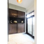 (旧株式会社ハウスドゥでの事例です。)玄関に合った既製品の収納がなかった為、古材を使用して収納を造作。 お持ちの靴の量に合わせたサイズにし、玄関もスッキリ! 玄関ということで湿気も多い為、壁面には珪藻土をご提案。