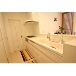 キッチンの対面正面からの写真です。キッチン前で簡単な食事やお子様のお勉強も可能です。