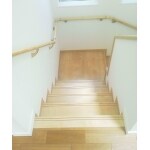 ご希望の通り、外側に設置をしましたので、安全に階段を降りられます。以前の階段の納まりは、ササラ納まりでしたが、この度は巾木納まりとしましたので、大工さんの手間はかかりましたが、綺麗に仕上がりました。踊り場のも途中で広げておりますので、以前よりも広い廻り込み階段にして、こだわりの階段となっております。