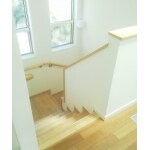 階段部分がどうしても敷地北側にレイアウトされている為、昼間でも暗く電気を付けないといけない状態なので、暗い空間となっておりました。以前の階段の納まりは、ササラ納まりでしたが、意匠を優先し、巾木納まりとして考えました。以前よりも広い廻り込み階段にして、こだわりの階段として検討をしました。