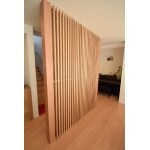 1階空間の既存間仕切壁をほとんどなくし、出来るだけ広くされたいご要望でしたので、耐震診断や既存構造の解析には苦労をしました。特に抜けない柱には化粧材を貼り、意匠上どう残すかもポイントとなりました。 事前の耐震補強チェックにはかなり時間が掛かりました。意匠上こだわりました縦格子では、壁が見通し出来、筋交をスチール製も物にして視界を遮らない様に工夫しましたので、玄関からの正面にも同じ意匠を使い又、リビング入口引戸にも同じ意匠でデザインを統一しています。 1階全体が大空間で心地良く感じられ、ホームパーティーで沢山の人が来られても圧迫感を全く感じません。
