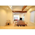 以前のダイニング空間はほぼ同じ位置でご希望でしたが、収納量が無く、家具などでスペースが圧迫されておりました。天井上が吹抜けとなっておりましたので、空気の淀みの解消とエアコンの位置を変更されたい事と既存サッシはシングルガラスでしたので、結露と結露から発生するカビが非常に衛生面も清掃性も良くありませんでした。床暖房のご希望も有りました。