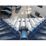 古い土を取り除きしっくいのみを詰めます。乾燥して固まると強度があがりずれの防止、防水性も上がります。土を入れ表面だけしっくいではないので耐久性も高いです。