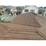 屋根に上がってみてコロニアルに多数のひび割れを発見。塗装では補修が効かないと判断し、やねをはがさずに出来るカバー工法にて新調を提案しました。