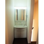 【施工後】は、もともと洗面化粧台スペースが存在せず、新たにスペースを確保しました。 扉部分を壁にして、少しのスペースでも有効利用し無駄をなくします。そこに洗面化粧台をはめ込みました。
