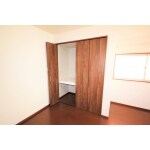 【施工後】は、ダークブラウンのクローゼット、フローリング使用。収納豊富で開放感のある洋室にありました。