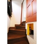 (旧株式会社ハウスドゥでの事例です。)工事中に見つかったデッドスペースを利用して雑貨のディスプレイコーナーとお酒や飲料水がストック出来る収納に。玄関からリビングまで続く階段が、目で楽しむことができる空間に。