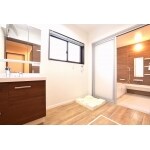 洗面位置を移動して、洗面化粧台を設置。湿気対策にセンサー付の換気扇も設置しました。