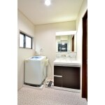 浴室と同じ0.75坪の洗面は、少々狭く窮屈にお感じで、洗面と洗濯機の配置も変えられたいとご希望頂きました。