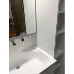 パナソニックのウツクシーズをご提案しました。大きな鏡が見やすく、その鏡の裏は全面収納場所となっており、整理整頓がしやすくなっています。