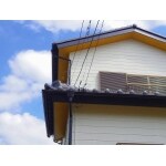 軒天の修理です。穴が開いていましたので、修理いたしました。また、1階・2階ともに軒天の張り替えを行いましたので、キレイになりました。